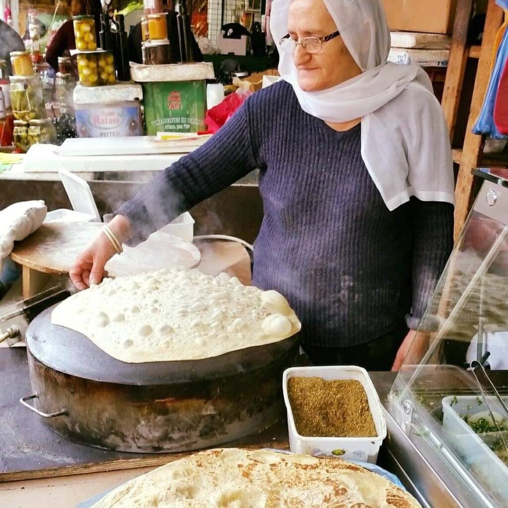 На обратном пути мы заехали на маленький друзский рынок, где Марк помог купить традиционный лаваш и горячий сахлав. А еще местный мед, масло и вкуснючие горные яблоки.