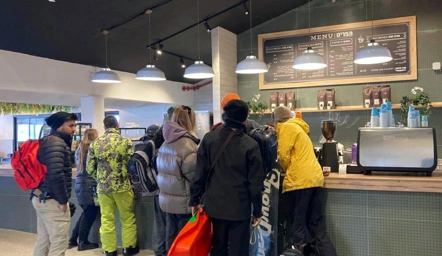 Народу было по самый потолок. Причем мы в Израиле, тут свое представление про очередь. Около прилавка была плотная стена спин и даже опыт московского метро не помог. Спасло нас то, что Марк опять же заранее об этом предупредил. У нас были бутеры и термос. У доброй половины посетителей Хермона еда была своя.